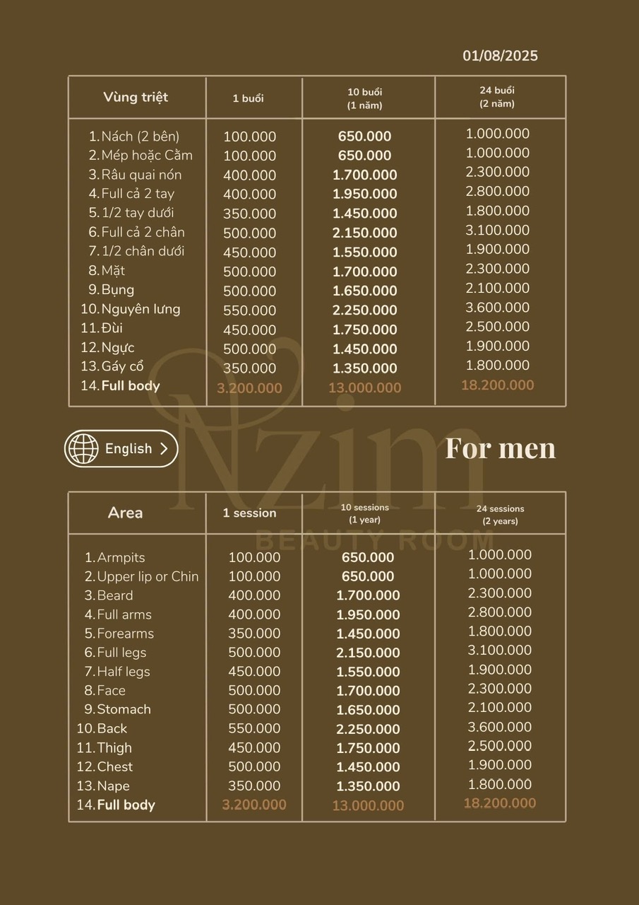 Bảng giá SHR Triệt lông